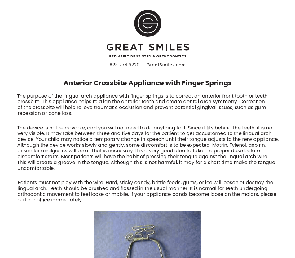 Anterior Crossbite Appliance Form