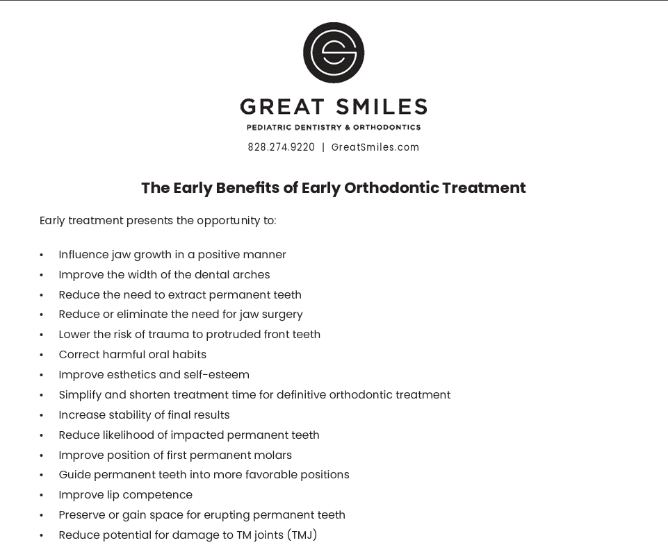 Early Benefits of Early Orthodontic Treatment