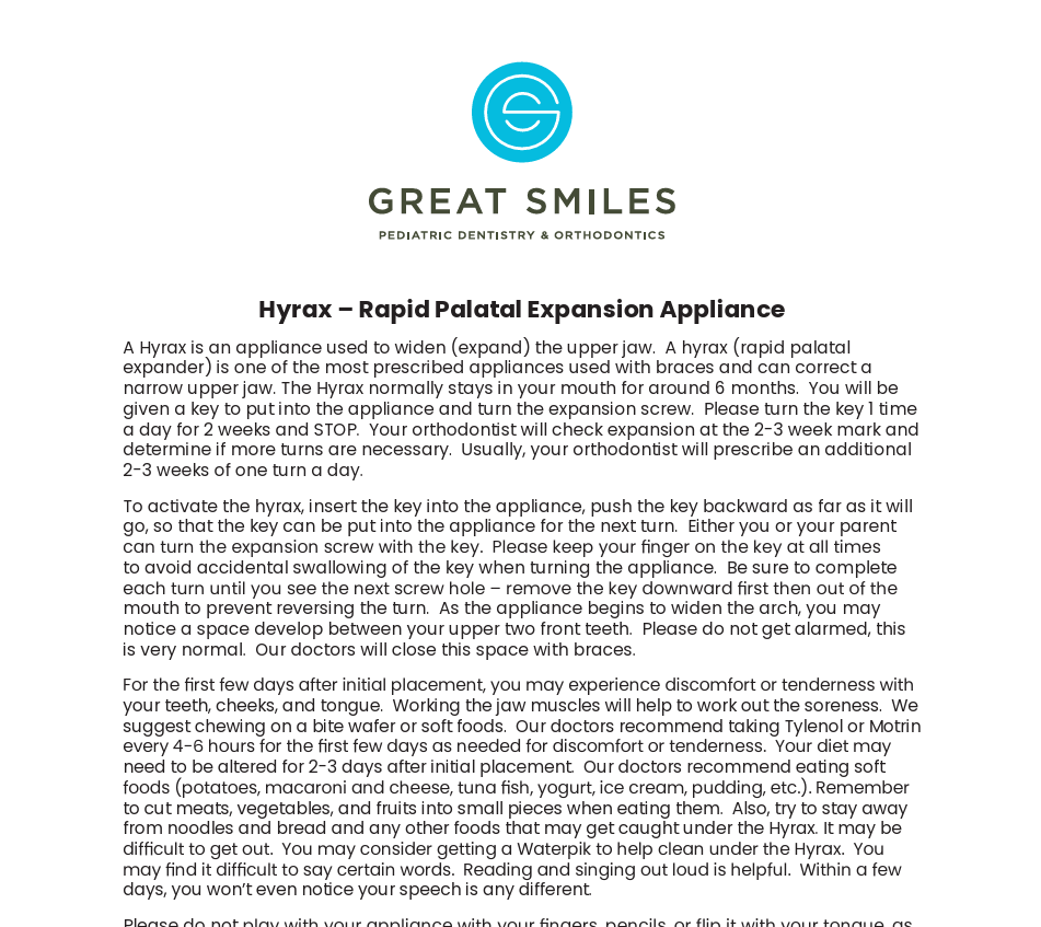 Herbst Appliance Form