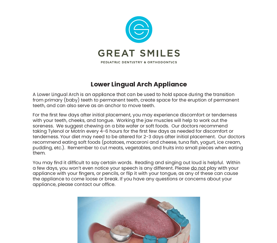 Lower Lingual Arch Appliance Form
